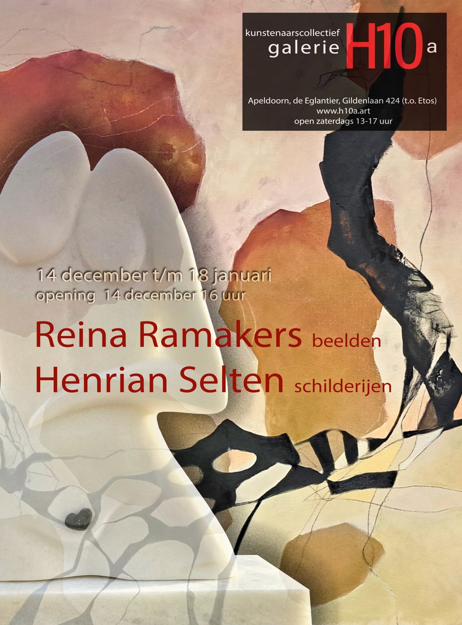 Van 14 december 2024 t/m 18 januari 2025 exposeren Reina Ramakers (beelden) en Henrian Selten (schilderijen) in Galerie H10a in Amersfoort. De galerie is tijdens het weekend geopend.